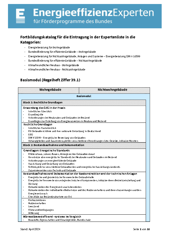 - Berufsqualifizierte Hochschulabsolventen aus einschlägigen Fachrichtungen (z.B. Ingenieure, Architekten) – Vertiefen Sie Ihre Qualifikationen und positionieren Sie sich als Experten für energieeffiziente Sanierungen.